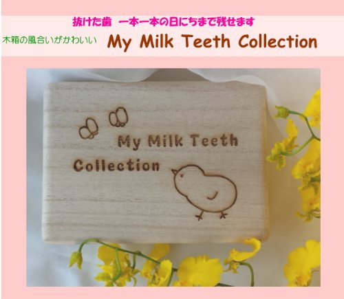 - 桐箱に抜けた乳歯を上下別々に保管できます