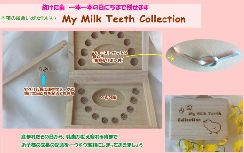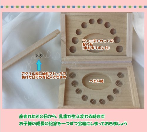 - 桐箱に抜けた乳歯を上下別々に保管できます