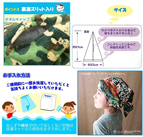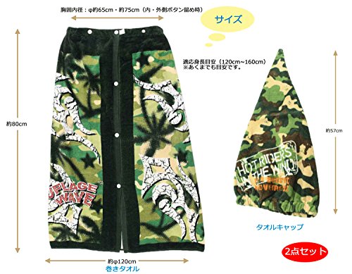 巻きタオル タオルキャップ 男の子セット L カモフラージュ/ウェーブ 約80×120cm/約23×57cm MF458600/ZD478100
