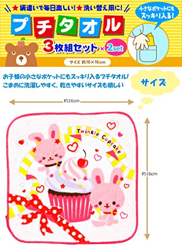 ハンカチ プチタオル 女の子セット C 計6枚 モコモコアニマル/スウィングライフ 3枚組×2組セット 16×16cm PG451100/PG451200