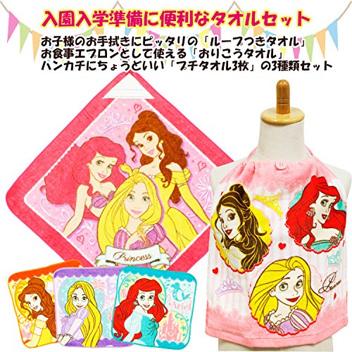 タオルセット ディズニープリンセス 入園準備 ループタオル/プチタオル3枚/おりこうタオル WG445000/PG451900/WG457200