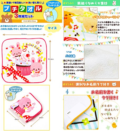 - 本体サイズ:ループタオル約34×34cm(1枚あたり)、おりこうタオル約34×35cm、プチタオル約16×16cm(1枚あたり)