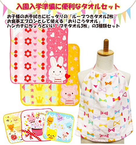 タオルセット 女の子用 入園準備 ループタオル2枚/プチタオル3枚/おりこうタオル WG807120/PG451100/WG454400