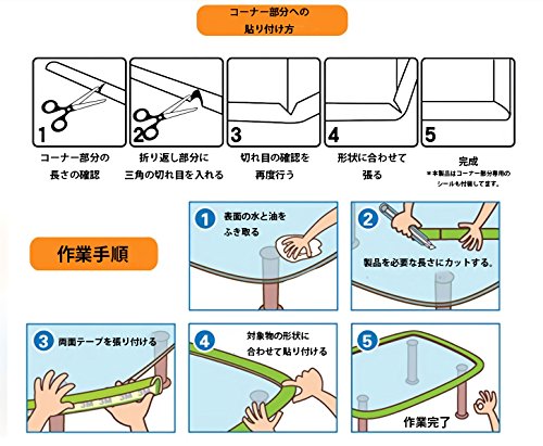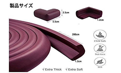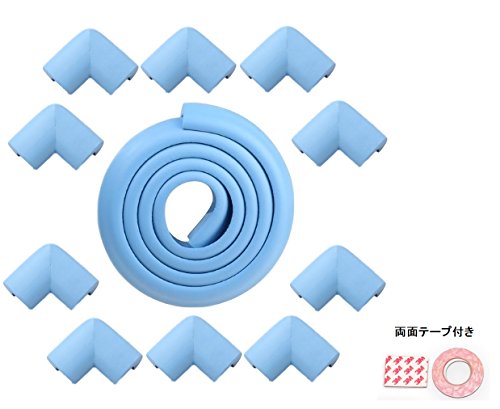 【製品概要】 本製品は赤ちゃん安全対策用コーナーガードです。 厚手のクッション生地で机や家具などの尖った角からお子さんをケガから守ります。 はさみやカッターで簡単に切れますので、必要な長さに簡単に調整可能です。 本製品はL字型ストレートタイプととコーナータイプの2種類をセット販売 保護したい場所によってメリット・デメリットがございますので、 場所によって使い分けしていただければ幸いです。 【使用法】 必要な長さに切って頂き、尖った角等に両面テープを貼ってお使いください。 【製品内容】 2メートルL字型、コーナー部10個