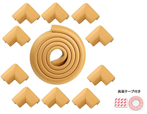 【製品概要】 本製品は赤ちゃん安全対策用コーナーガードです。 厚手のクッション生地で机や家具などの尖った角からお子さんをケガから守ります。 はさみやカッターで簡単に切れますので、必要な長さに簡単に調整可能です。 本製品はL字型ストレートタイプととコーナータイプの2種類をセット販売 保護したい場所によってメリット・デメリットがございますので、 場所によって使い分けしていただければ幸いです。 【使用法】 必要な長さに切って頂き、尖った角等に両面テープを貼ってお使いください。 【製品内容】 2メートルL字型、コーナー部10個