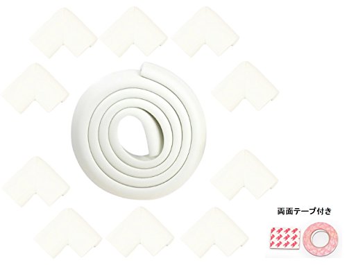 【製品概要】 本製品は赤ちゃん安全対策用コーナーガードです。 厚手のクッション生地で机や家具などの尖った角からお子さんをケガから守ります。 はさみやカッターで簡単に切れますので、必要な長さに簡単に調整可能です。 本製品はL字型ストレートタイプととコーナータイプの2種類をセット販売 保護したい場所によってメリット・デメリットがございますので、 場所によって使い分けしていただければ幸いです。 【使用法】 必要な長さに切って頂き、尖った角等に両面テープを貼ってお使いください。 【製品内容】 2メートルL字型、コーナー部10個