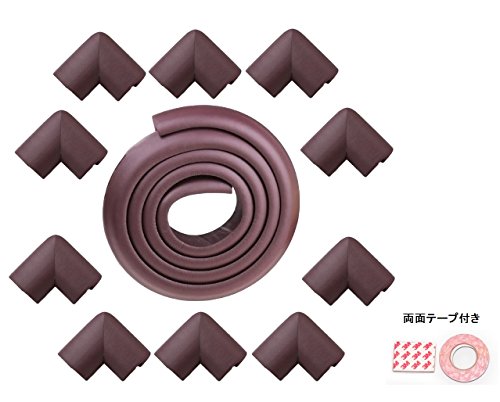 【製品概要】 本製品は赤ちゃん安全対策用コーナーガードです。 厚手のクッション生地で机や家具などの尖った角からお子さんをケガから守ります。 はさみやカッターで簡単に切れますので、必要な長さに簡単に調整可能です。 本製品はL字型ストレートタイプととコーナータイプの2種類をセット販売 保護したい場所によってメリット・デメリットがございますので、 場所によって使い分けしていただければ幸いです。 【使用法】 必要な長さに切って頂き、尖った角等に両面テープを貼ってお使いください。 【製品内容】 2メートルL字型、コーナー部10個