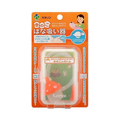 「カネソン きのこはな吸い器」は、赤ちゃんの取りにくい鼻水をママが口で吸い取る鼻吸い器です。横穴設計となっており、寝かせたままでも、抱きかかえたままでも、自然な姿勢で楽に鼻水を吸い取ることができます。ノーズピースは赤ちゃんにやさしいシリコンゴム製で、片側をカットしているので鼻の穴にピッタリフィットします。取った鼻水はボトルにたまり、逆流しないようになっています。マウスピースは、吸引の微妙な調整が口元でできるようになっています。