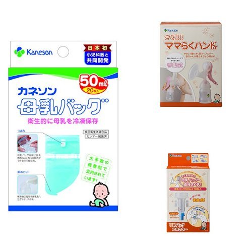 【セット買い】 カネソン 母乳バッグ 50ml 20枚入 + さく乳器本体 ママらくハンドα + 母乳バッグコネクター