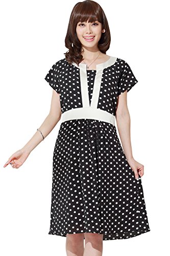 スウィートマミー (Sweet Mommy) ドット シフォン サテン トリミング 授乳 ワンピース 授乳服 / マタニティ M ブラック