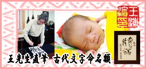 静かなブームの古代文字は、文字の発明が見られるので、古代文字に触れることは私達人間にとって、原点に 立ち戻るような懐かしさがあります。愛らしい赤ちゃんに思いを込めて・・・名前は幸せの始まりの第一歩です。王 海濱先生が心を込めてお書き致します。お子様への大切な贈り物としていかがでしょうか。ご出産祝や内祝いにも最適です。