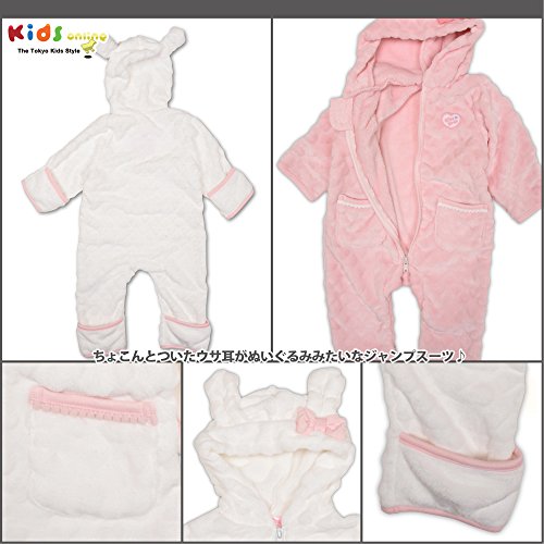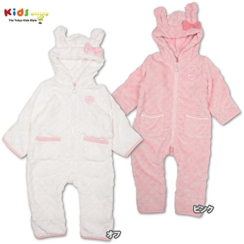 ハート型になったボアが可愛すぎる♪ウサ耳付きがCUTEなジャンプスーツ★手足の部分はひっくり返せるので、暖かさも◎!ポケット部分の飾りがアクセントになった、女の子らしい一枚です♪
