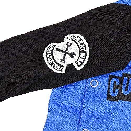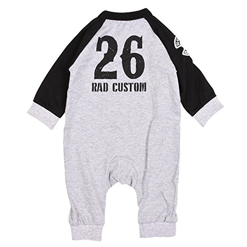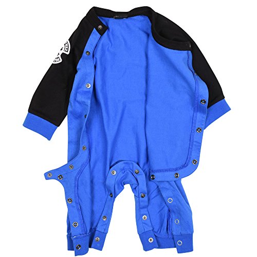 ギフトにもおすすめしたいロンパース。袖のワッペンがポイント☆ボタンなのでお着替えもオムツ交換もラクチンです。