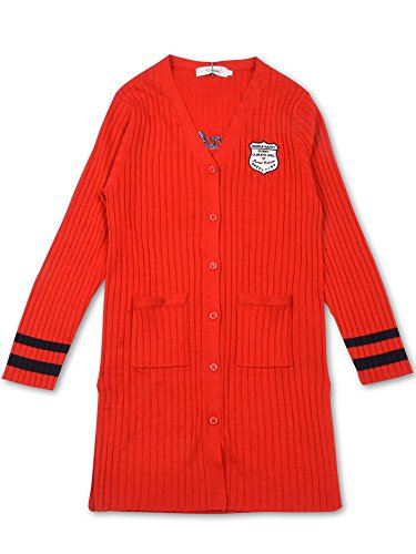 ワッペンや袖のラインがプレッピーなカーディガンをトレンドのデザインに★ワイドリブの編み地やロングシルエットでいつものコーディネートに差をつけます!