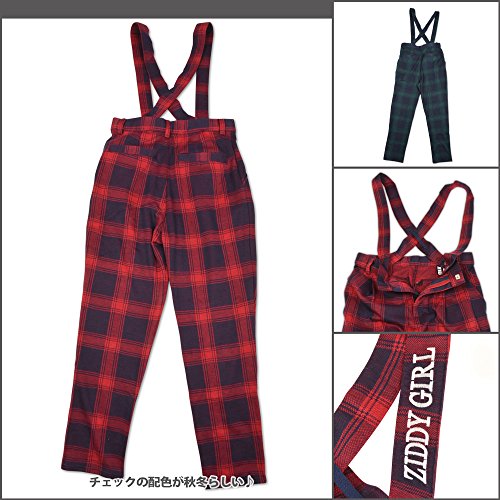 (ジディー) ZIDDY スムースチェック サスペンダー付パンツ 150cm グリーンベース