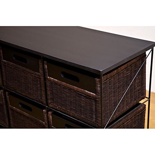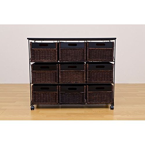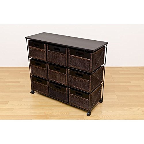 ラタンチェスト 【引き出し9杯】 スチール/籐カゴ キャスター付き アジアン調 ブラウン