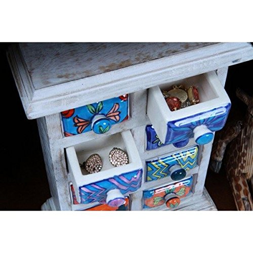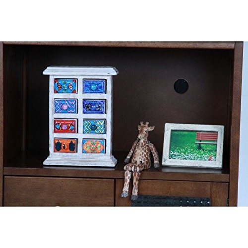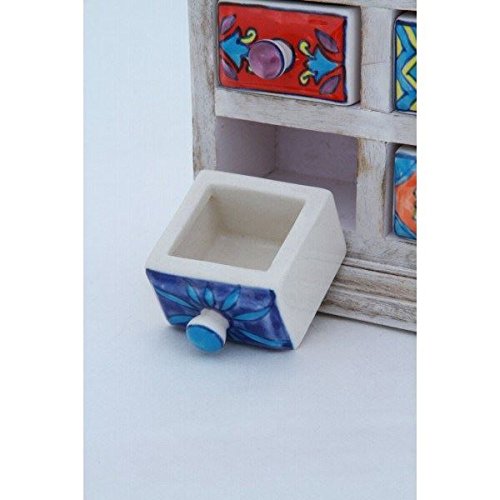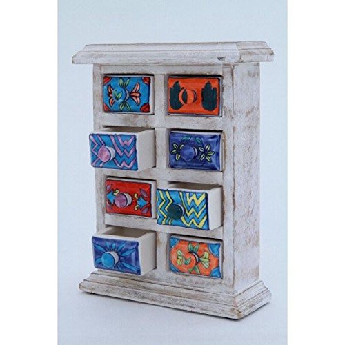 ラビミニチェスト【8マス】 セラミック/木製(チーク材) 幅17.5cm×奥行7cm ホワイト(白) (インテリア家具)