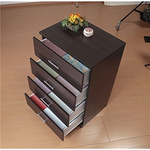 大量収納チェスト 【59cm幅】 4段 スリム 取っ手付き スライドレース ダークブラウン