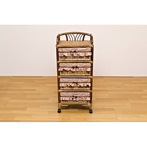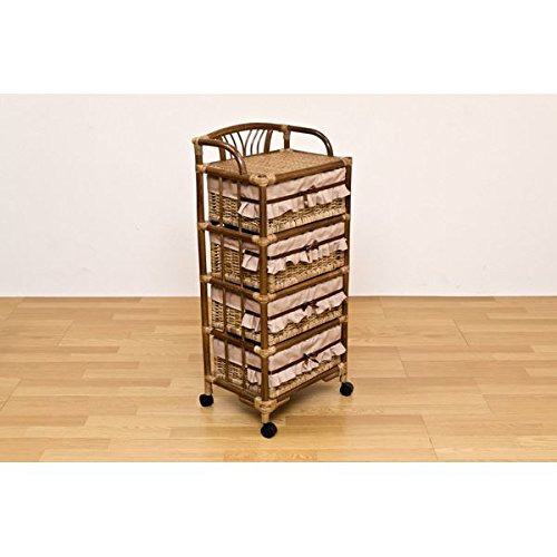 ラタン ランドリーチェスト 【4段】 木製 幅50cm×奥行37cm キャスター付き アジアン調 カゴ収納 ブラウン