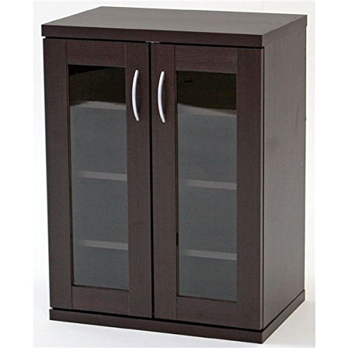 キャビネット(収納チェスト) 【ポルト】 ガラス扉 幅60cm×奥行39.5cm 固定棚1枚/可動棚2枚付き ブラウン