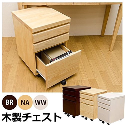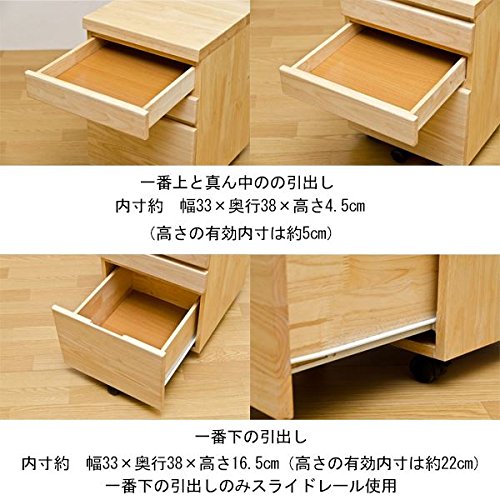木製チェスト(キャスター付きサイドワゴン) 【引出し3杯】 木製 ナチュラル
