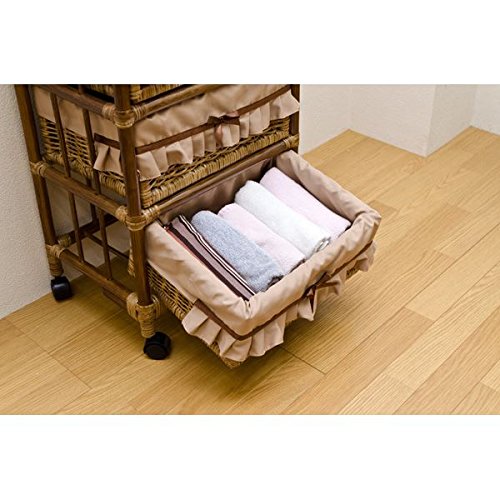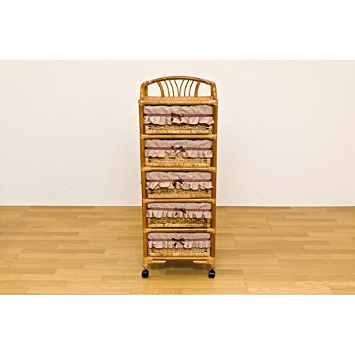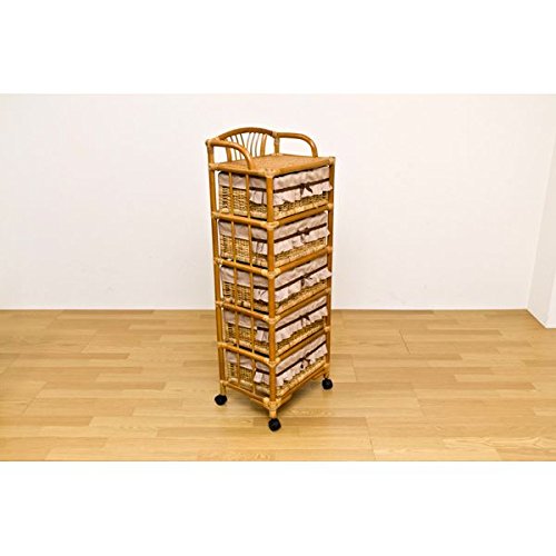 ラタン ランドリーチェスト 【5段】 木製 幅50cm×奥行37cm キャスター付き アジアン調 カゴ収納 ハニー