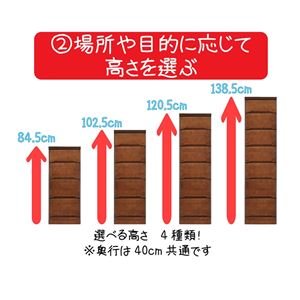 〇仕様:幅は20cm幅~40cm幅(2.5cm刻み)、段数は4~7段から選べます。