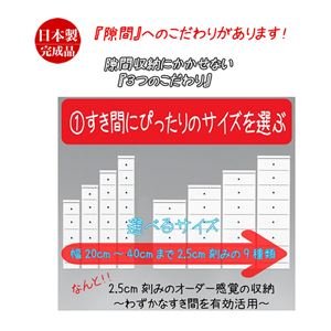 - 2.5cm間隔のオーダー収納!狭いすき間を有効活用