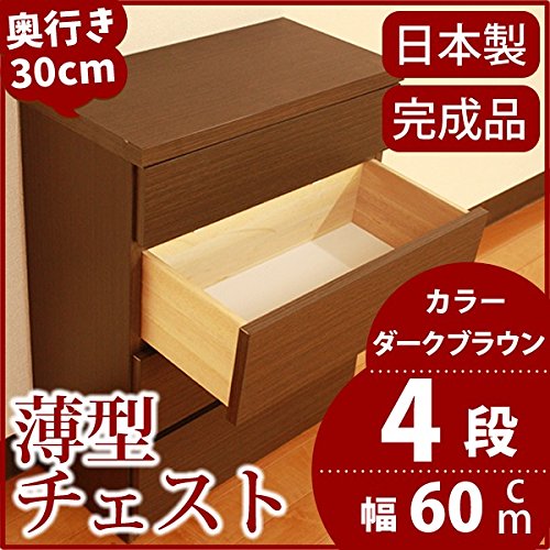 薄型チェスト 奥行30cm 幅60cm 4段 ダークブラウン木目調 【日本製 完成品】 大川家具