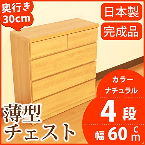 薄型チェスト 奥行30cm 幅60cm 4段 ナチュラル木目調 【日本製 完成品】 大川家具