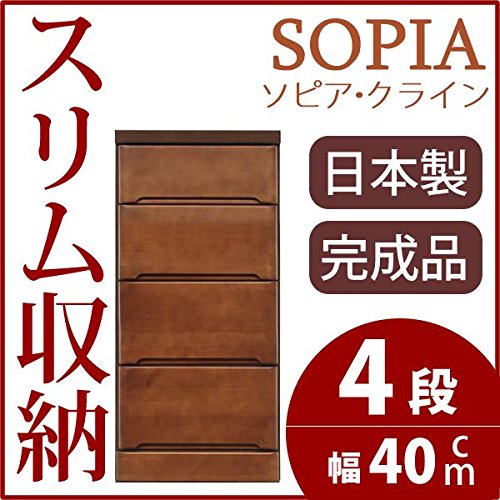 すき間収納 チェスト 幅40cm 4段 本体:ブラウン 茶 【日本製 完成品】 大川家具