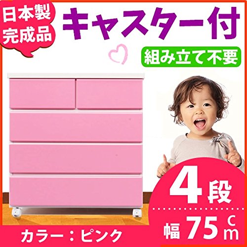 キャスター付き チェスト 幅75cm 4段 ピンク 【 日本製 完成品 】 大川家具