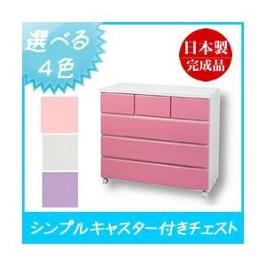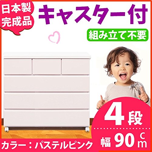 キャスター付き チェスト 幅90cm 4段 パステルピンク 【 日本製 完成品 】 大川家具