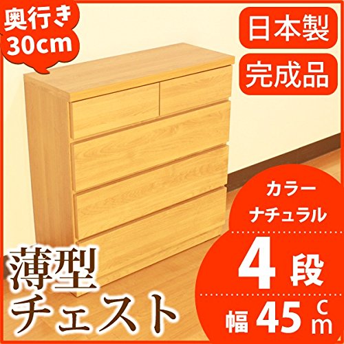 薄型チェスト 奥行30cm 幅45cm 4段 ナチュラル木目調 【日本製 完成品】 大川家具