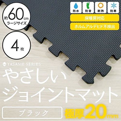 【 超極厚 20mm 】 ノンホル 『 やさしいジョイントマット 』 大判 【4枚入 本体 ラージサイズ(60cm) ブラック 黒 】 床暖房対応 防音