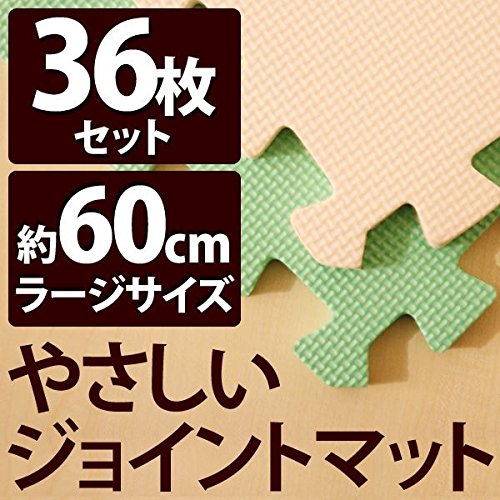 やさしいジョイントマット 約8畳本体 ラージサイズ 36枚セット ミント×ベージュ