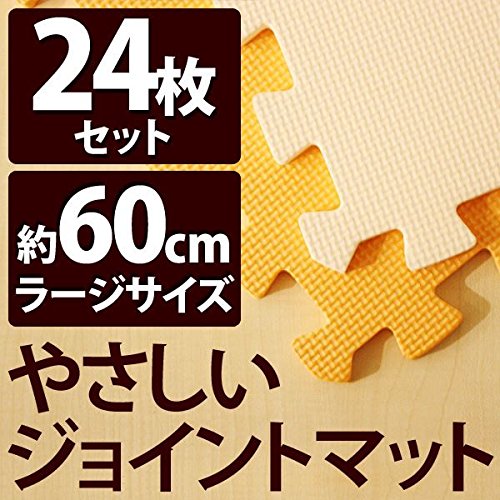 やさしいジョイントマット 約4.5畳 (24枚入) 本体 ラージサイズ (60cm×60cm) オレンジ×ベージュ 【 床暖房対応 】