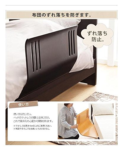 商品について:ベッドのマットレスにはさむだけで布団のずれ落ちを防止するベッドガードの2個セット。木製なので触ってもひんやりしません。木製のぬくもりあふれた仕上がりになっています。