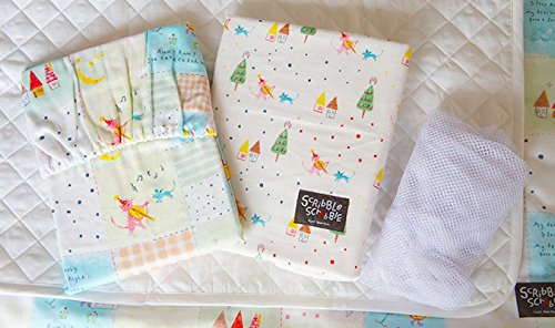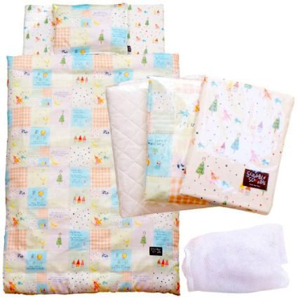 Scribble Scrabble(スクリブルスクラブル)Melon Patch ダブルガーゼベビーふとん10点セット(掛けふとん中芯 掛けふとんカバーx2 まくら中芯 まくらカバー ワンタッチシーツx2 固わた敷きマット キルトパッド 洗濯ネット)【SMP001】
