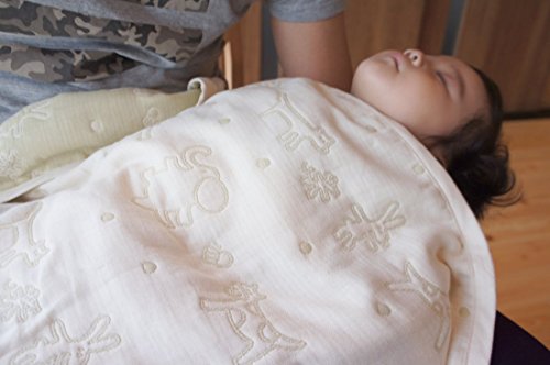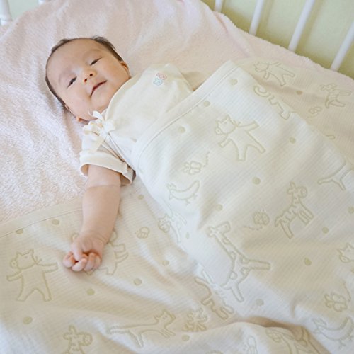 繊細な赤ちゃんの肌に、ふんわり柔らかなオーガニックコットン6重ガーゼ使用しています。 使えば使うほど柔らかふっくら。 お昼寝に、ベビーカーでのお出かけに、オールシーズンお使い頂けます。 ママのひざ掛けにも使用できます。 ジャガード織りで、カラーは上品な生成り色と若草色で、リバーシブルで使用できます。 可愛い動物たちの絵柄がキュート! 長くお使いいただけるよう、最高級素材で仕上げています。 ご家庭でお洗濯できます。 【■使用しているオーガニックコットンについて】 無農薬・有機栽培を3年以上行なった畑で栽培した綿を使用。日本にオーガニックコットンを広めた大正紡績の糸を使って作られました。