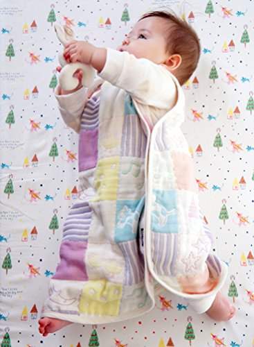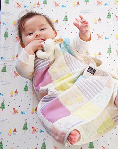 生成り地にピンク・イエロー・パープル・ブルー・オレンジ・グリーンのカラフルなジャガード織り。 夏はさらさら、冬はあったか。 オールシーズン使えるスリーパーです。 開閉部は、両脇に3つずつ、肩口に3つのスナップボタンになっています。 お着替えやおむつ替えも簡単です。 ◆スリーパーは吸水性の良いものを・・・◆ 赤ちゃんはとても汗かき。お休み中にも沢山の汗をかくので吸水性に優れた6重ガーゼのスリーパーは重宝します。 ◆お洗濯するほど、フワフワの肌触り◆ 6重ガーゼは、網目の違うガーゼ生地を6層に重ねて作られるので、お洗濯するうちに空気を含み易くなりフワフワとボリューム感がアップしてきます。