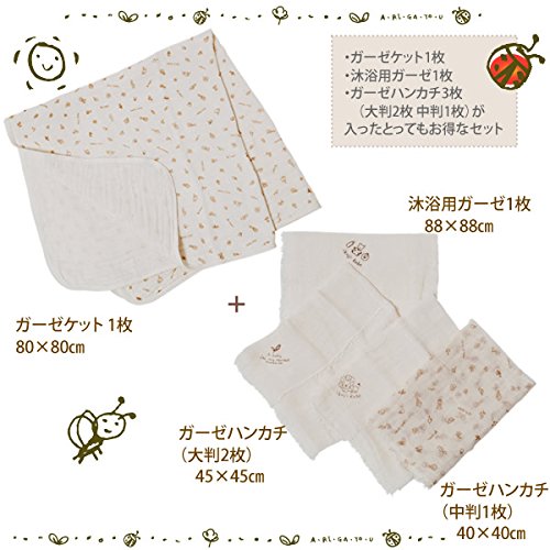 - 人気の知多木綿ガーゼケットと沐浴布、ガーゼハンカチ3枚のセットです。