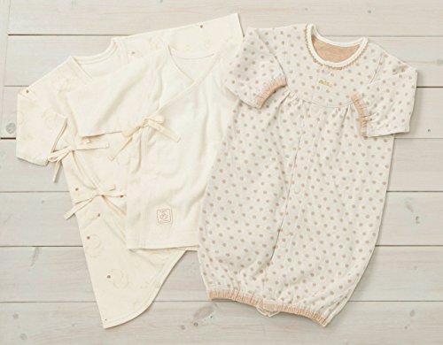 ●生まれたばかりの赤ちゃんは、短肌着・コンビ肌着・ベンリードレスの3枚が基本スタイル。●綿そのものの自然な色を生かしたナチュラルで愛らしいドット柄のベンリードレスを、縫製にこだわりぬいた肌着と合わせて、オーガニック100%、安心の日本製3点セットにしました。 ベンリードレスは、新生児期はオムツ替えが楽なドレス型で、元気に足を動かしはじめたら股のスナップボタンを留めかえて動きやすいカバーオールとして長く使えます。