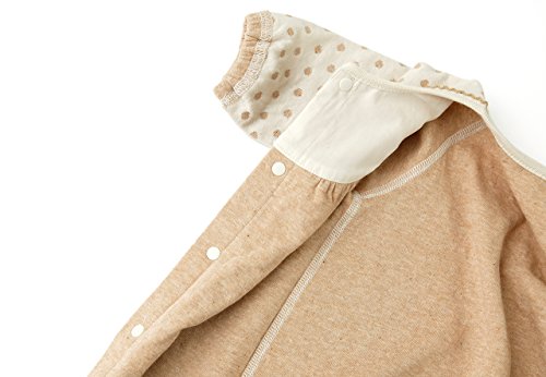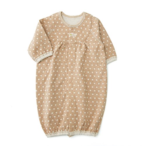 - 綿そのものの自然な色を生かしたキナリとベージュに、ドット柄がナチュラルでかわいい、オーガニックコットンの兼用ドレス。ふわふわとやわらかな着心地に赤ちゃんも満足。新生児期はオムツ替えが楽なドレス型で、動きが活発になってきたらカバーオールとして長く使えます。