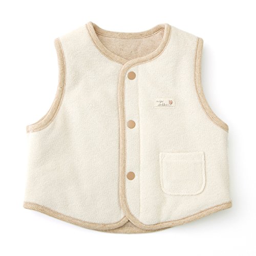 - 体温調節が未熟な赤ちゃんのために、ぜひ用意してあげたいアイテム。中綿がほどよく入った薄手のベストなので、オールシーズン使えて便利です。オーガニックコットンならではの自然な素材が、デリケートな赤ちゃんのお肌をやさしく守ります。