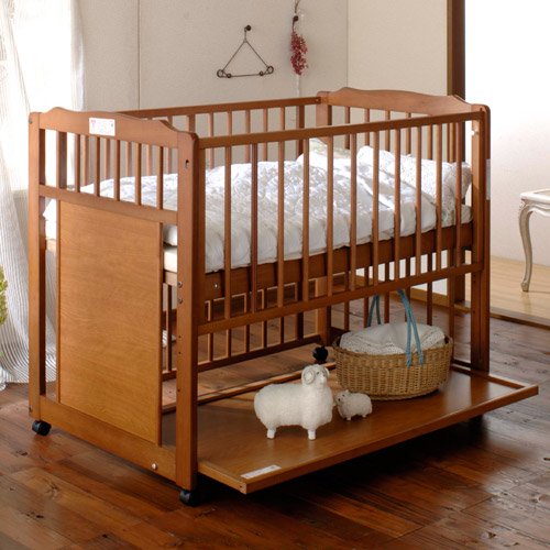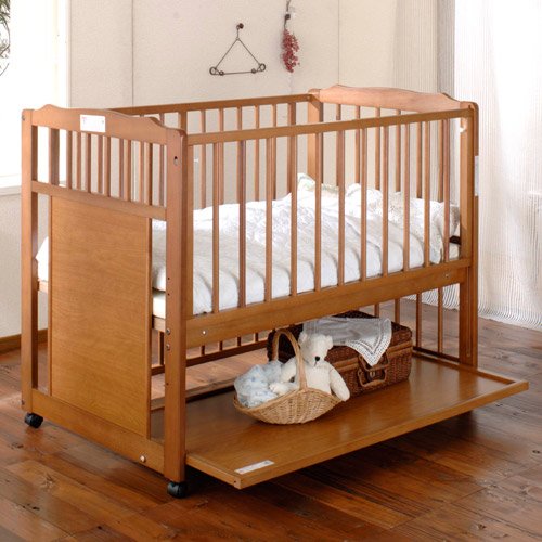 床板の高さが60cmあるので、背の高いママの腰への負担もかかりにくい☆(ハイタイプベビーベッド) ベッド下収納棚は、スライド式で使い勝手よく、おむつやケアグッズの整理に大活躍! 前扉部分は、少し持ち上げてから開く2段構造。上のお子様がいたずらしにくく安全です。 お子様の成長に合わせて、床板の高さも3段階に変更可能。 ※お布団や小物はセットでは御座いません。ベビーベッド本体のみになります。