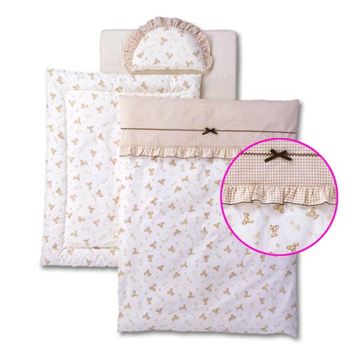 コンパクトなサイズだからお部屋の移動もラクラクです。 前上扉は上下スライド式で、収納棚付き。 ホワイトカラーでお部屋にも合いやすいミニサイズのベビーベッド かわいいクマ柄のミニふとんAセットが付いています! ■ ミニ布団セット内容 ■ 生地:綿100%、中綿:ポリエステル100% ・掛けふとんカバーリング/83cm×108cm(日本製) ※掛けカバーは掛ふとんに掛けられた状態です。 ・掛ふとん/80cm×105cm(ウォシュロン)(日本製) ・肌ふとん/70cm×90cm(ウォシュロン)(日本製) ・枕/36cm×26cm(ウォシュロン)(日本製) ・敷フットシーツ/60cm×90cm(中国製) ・敷ふとん/60cm×90cm(固綿){※側生地(中国製)・中綿(日本製)}