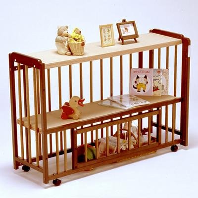 ベッド使用後は、収納ラックに組み替え可能なキンタローのロングライフベビーベッドです。 [ベビーベッド] 上下スライド扉でおむつ替えなどにも使いやすく、床板したには収納棚があります。 4輪キャスター付き(2輪ストッパー付)でラクラク移動することが出来ます。 床板は、お子様の成長に合わせて3段調節可能(上段390・中段260・下段130mm) [収納ラック] ラックは、キャスターを取り付ける事も可能です。 ※小物などはセットでは御座いません。