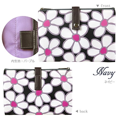 Pouche(ポーチェ) 母子手帳ケース Wポーチ フラワー (M, ネイビー) SH0002C