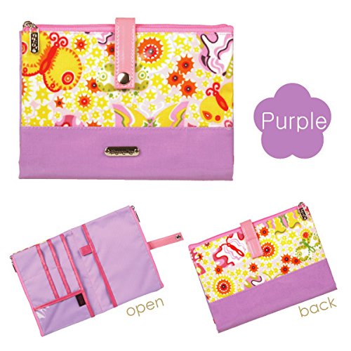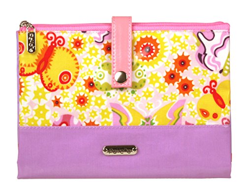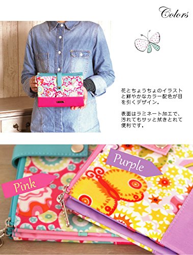 ポーチェ(pouche) 母子手帳ケース Wポーチ 花とちょうちょ (M, パープル)